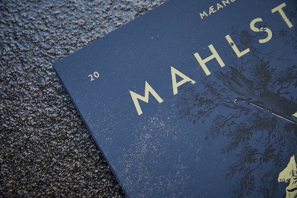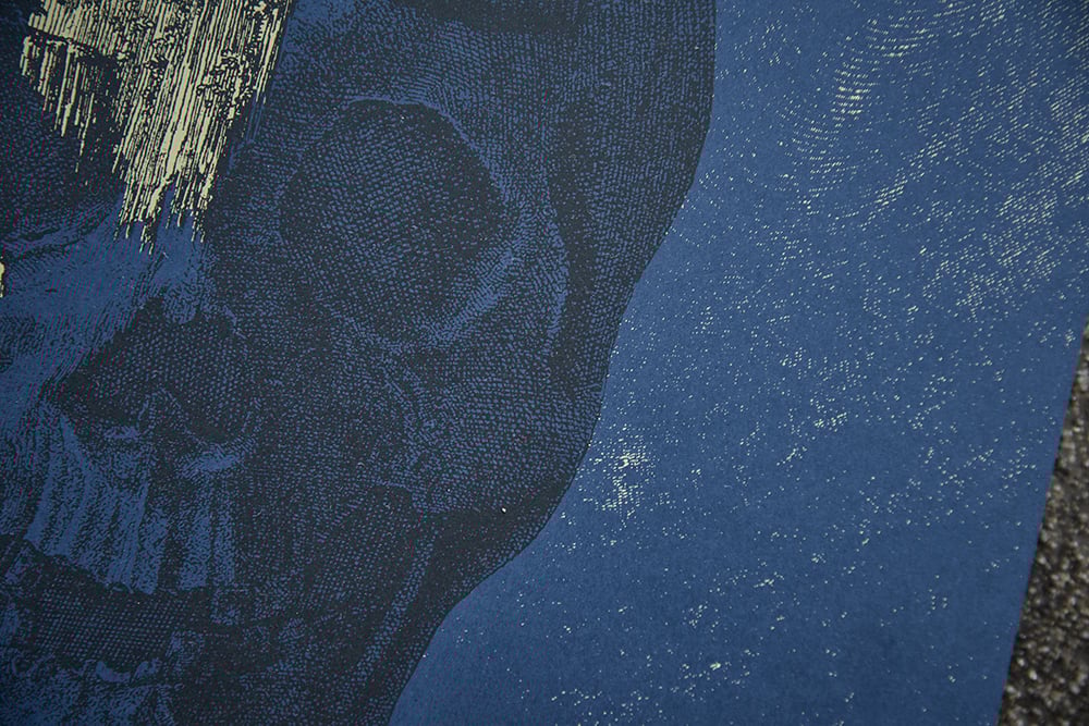 2 colour screen print on dark blue 220g/m2 cardboard.